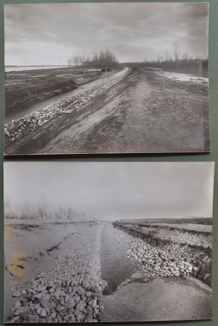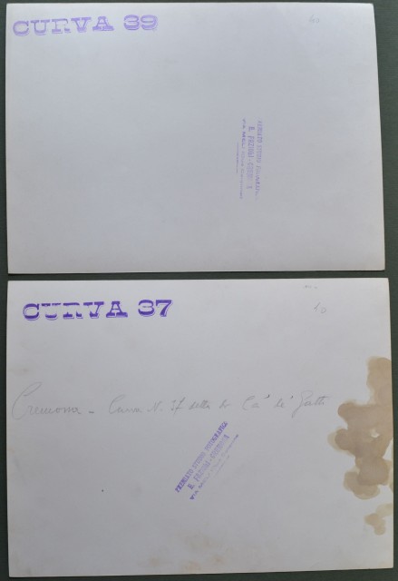 FIUME PO. Cremona. Due foto (ciascuna di cm 26x20) dello studio Ernesto Fazioli di Cremona e databili all'inizio degli anni 1950. Mostrano la CURVA 39 e la CURVA 37, presso Cremona, detta di Cà de' Gatti. Una è macchiata lateralmente. (Rif.C3903)