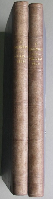 Periodico illustrato '800. L'ILLUSTRATION, JOURNAL UNIVERSEL. ANNATA 1878, completa. Due volumi rilegati in mezza tela all'epoca con titolo in oro al dorso.