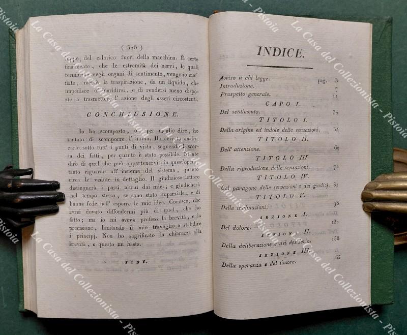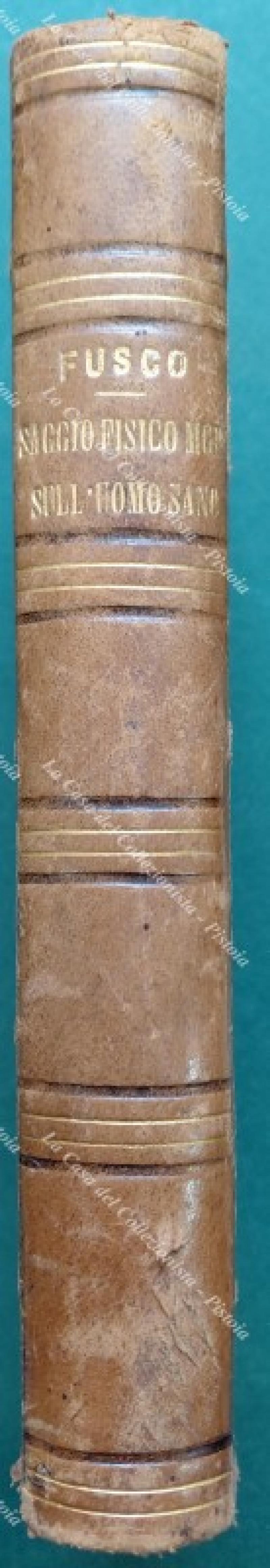 (Fisiologia - Filosofia) FUSCO Giuseppe. SAGGIO FISICO - MORALE SULL'UOMO SANO. Napoli, Stamperia di gabriele Mosino, 1820. Cm 13,5x20,5, bella mezza pelle ottocentesca con titolo in oro al dorso. Pp. 326 + 10 non numerate. Ottima conservazione. (Rif.F7081)