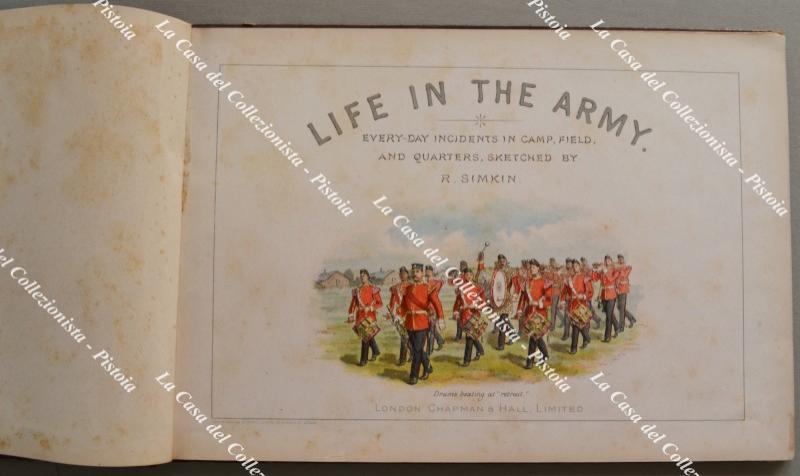 LIFE IN THE ARMY. EVERY-DAY INCIDENTS IN CAMP, FIELD, AND QUARTERS, SKETCHED BY R. SIMKIN. Londra, Chapman & Hall, senza data (ma 1889).