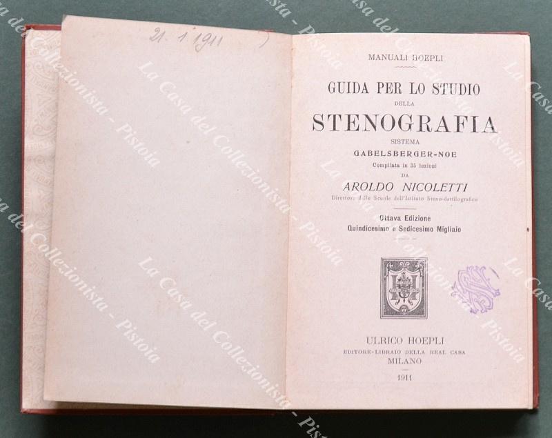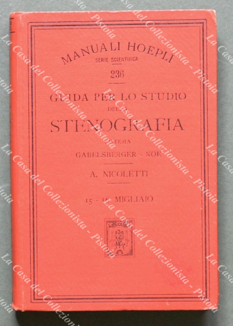(Manuale Hoepli) NICOLETTI AROLDO. Guida per lo studio della stenografia. Sistema Gabelsberger-Noe. Milano, 1911, in 16°, tela editoriale, pp. VIII + 160. (Rif.A637-393/74)