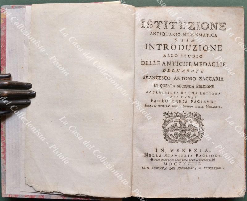 (Numismatica) ZACCARIA FRANCESCO ANTONIO. ISTITUZIONE ANTIQUARIO-NUMISMATICA.... Venezia, Stamperia Baglioni, 1793.