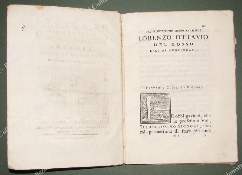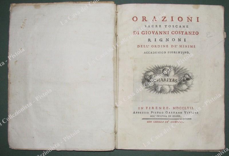 Orazioni religiose-ediz.'700. RIGNONI GIOVANNI COSTANZO. "ORAZIONI SACRE TOSCANE". Firenze, Appresso Pietro Gaetano Viviani all'insegna di Giano, 1757