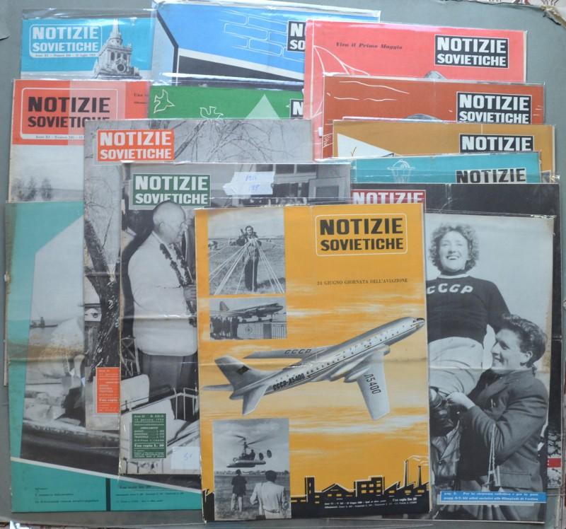 (Periodico illustrato – Comunismo) NOTIZIE SOVIETICHE. Periodico illustrato edito a Roma, formato cm 30x41, pagine 12 a numero. Disponiamo dell'annata 1956 (anno XI), completa, composta dai numeri 230/253. Tutti i numeri hanno una piega centrale dovuta alla conservazione. (Rif.D3456 - 575/67)