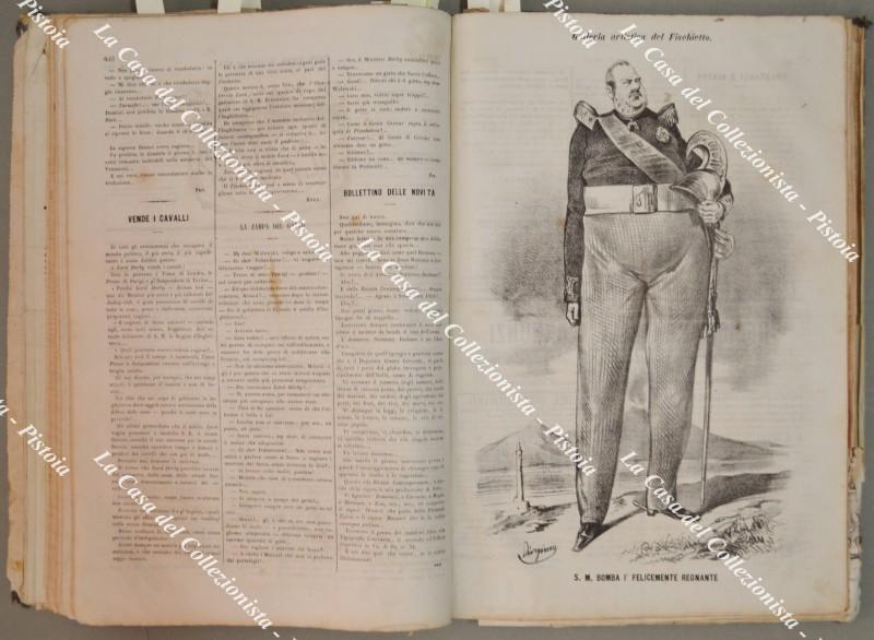 (Periodico satirico ill. ‘800) IL FISCHIETTO. Annata 1858. Completa. Rivista satirica fondata a Torino nel 1848 dal disegnatore Lorenzo Pedrone (Icilio) e dal tipografo Giuseppe Cassone.