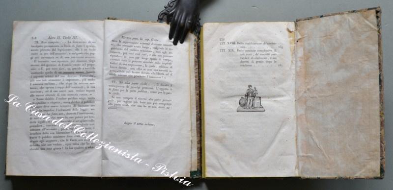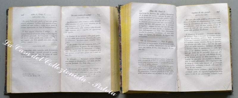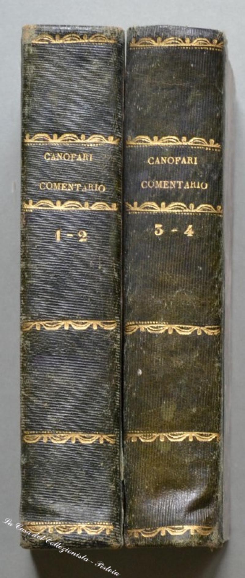 (Regno delle Due Sicilie - diritto) CANOFARI FRANCESCO. COMENTARIO SULLA PARTE QUARTA DEL CODICE PER LO REGNO DELLE DUE SICILIE O SIA SULLE LEGGI DELLA PROCEDURA NE’ GIUDIZI PENALI. Napoli, F.lli Trani, 1830. In 8° (cm 12,5x20,5), legature coeve in mezza pelle con titoli in oro ai dorsi e piatti marmorizzati. Due tomi contenenti 4 volumi di pagine 320, 319, 320 e 336. Qualche segno d’uso alle legature, interno in buona conservazione. (Rif.D3173 - 283/66)