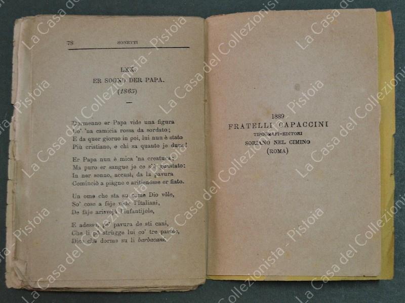 (Satira) SONETTI POLITICI E SATIRICI IN DIALETTO ROMANESCO.... Roma, 1889