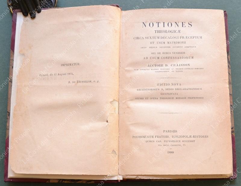 Teologia morale - sesso. CRAISSON D.. DE REBUS VENEREIS AD USUM CONFESSARIORUM.... Parigi, 1888
