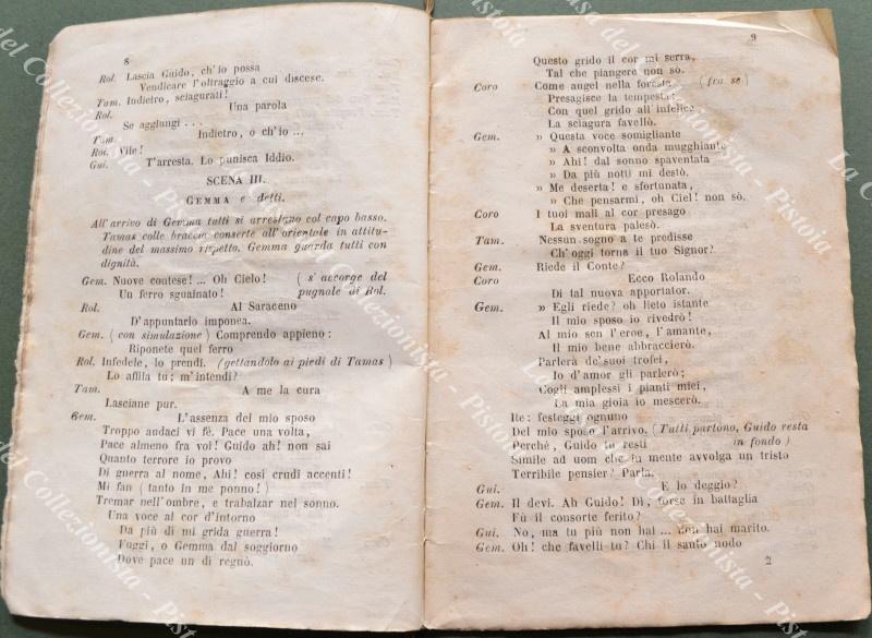 TEATRO. GEMMA DI VERGY. Tragedia lirica in 2 atti. Musica di G. Donizzetti. Firenze, Romei, 1857. Cm 11,5x17, senza brossura. (Rif.F2811)