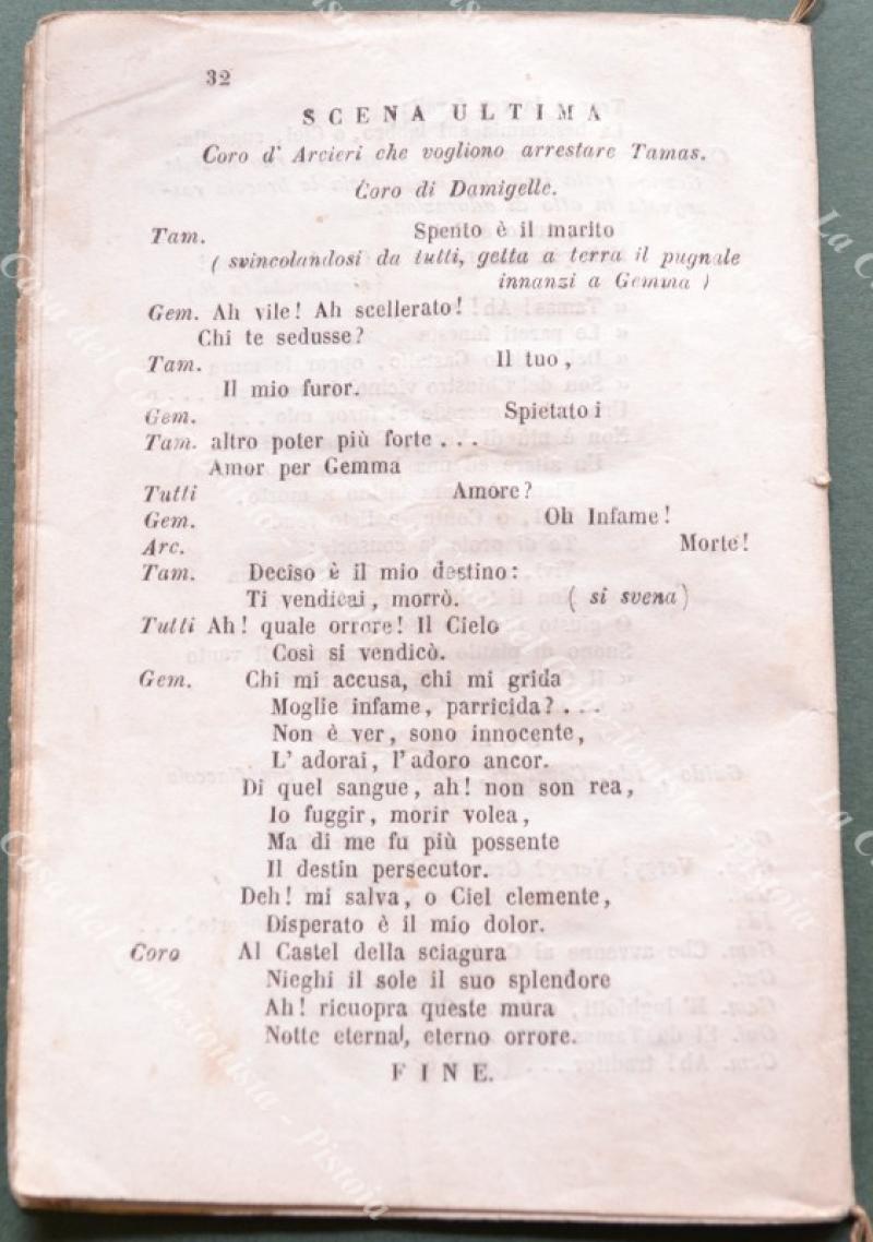 TEATRO. GEMMA DI VERGY. Tragedia lirica in 2 atti. Musica di G. Donizzetti. Firenze, Romei, 1857