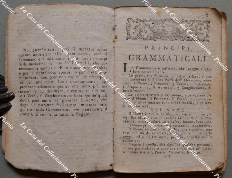 GRAMMATICA anno 1805. PRINCIPJ GRAMMATICALI PER L'ACQUISTO DELLA LINGUA LATINA, E ITALIANA AD USO DELLE SCUOLE PIE.