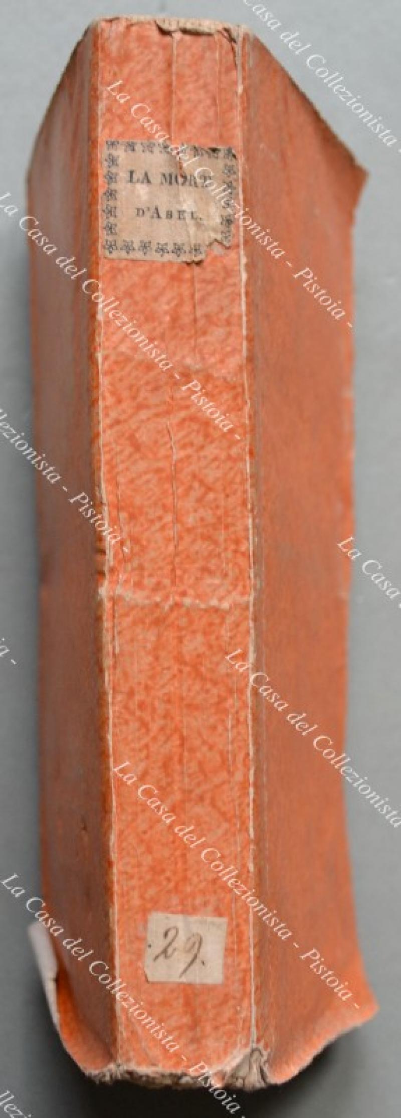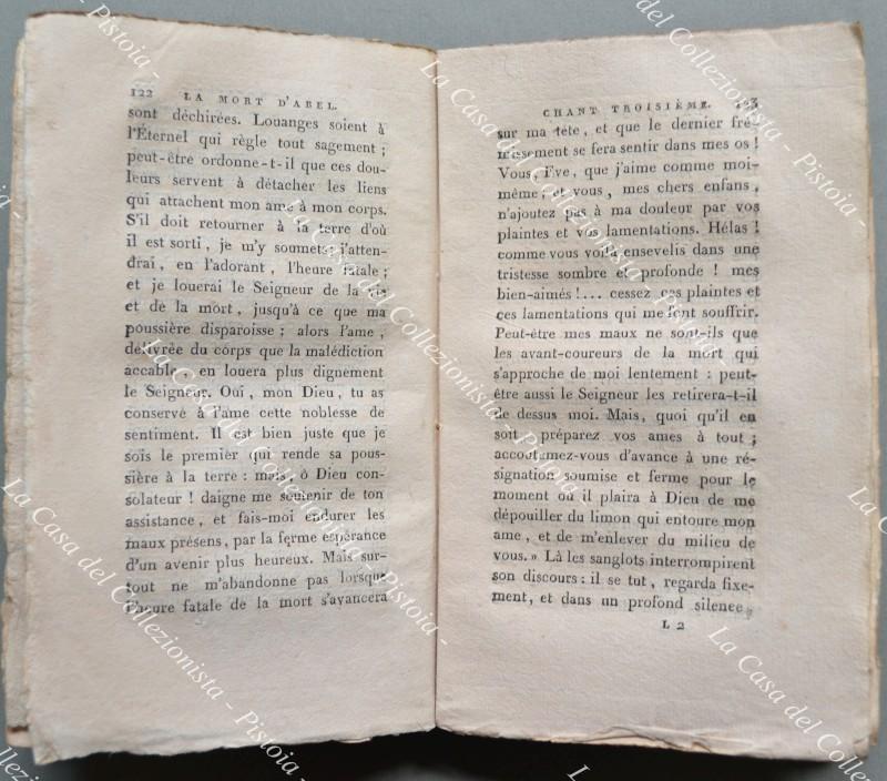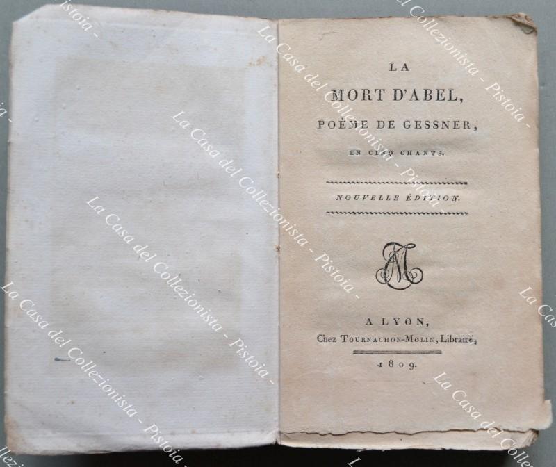 La mort d'Abel, Poeme en cinq Chants par Gessner. Lione, Tournachon-Molin, 1809. Modesta brossura coeva, cm 11x18, pp. 274 con antiporta e una tavola incisi. Buona conservazione. (Letteratura - Rif.A415-538/68)