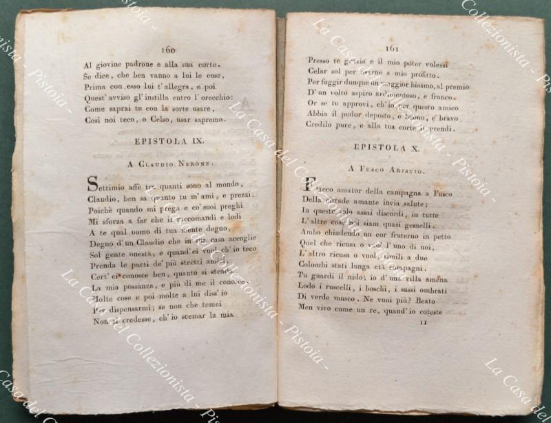 (Letteratura latina) ORAZIO FLACCO. LE SATIRE E L’EPISTOLE DI Q. ORAZIO FLACCO TRASPORTATE IN VERSO ITALIANO DAL PROFESSOR PAGNINI. Pisa, Ranieri Prosperi, 1814. In 16° (cm 13x19,7), brossura muta coeva, in barbe. Pp. 322 + (2). Ingiallimenti e segni d’uso alla brossura. (Rif.D7800-577/72)