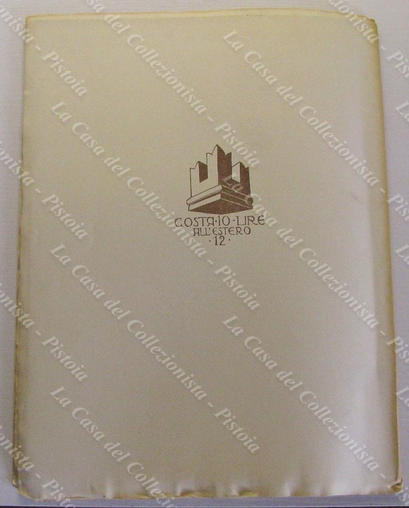 QUADERNO 107 (anno XV, 1927). Pagine 65+3. Cm 33x25. Il fascicolo ha margini intatti e intonsi. Conserva le copertine originali, con incisione, poi ripetuta al frontespizio, di P. Morbiducci “Il Pontelevatoio”. Scritti di D. Cinelli, V. Abbondio, G. Sajani ed altri. 14 tavole dedicate a Mario Raviglione. (Rif.F0387-583/73)