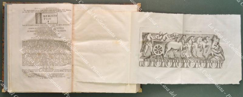 (Letteratura italiana- ediz. ‘700 ill.) ZACARIA FRANCESCO ANTONIO. EXCURSUS LITTERARII PER ITALIAM. Ab anno MDCCXLII ad annum MDCCLII. Venezia, Remondini, 1754. In 8° (cm 18x24), mezza pergamena ottocentesca con tassello al dorso e piatti marmorizzati. Volume I° (di due), pp. (12) + 380 con 5 tavole ripiegate fuori testo. Ottima conservazione. (Rif.D7993-588/72)