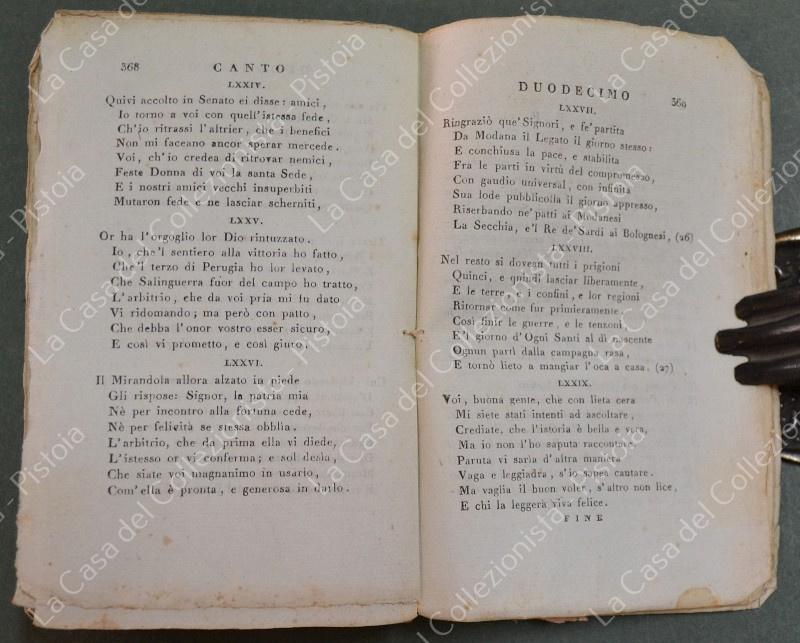 (Letteratura). TASSONI ALESSANDRO. LA SECCHIA RAPITA. Pisa, Nistri, 1814