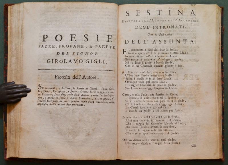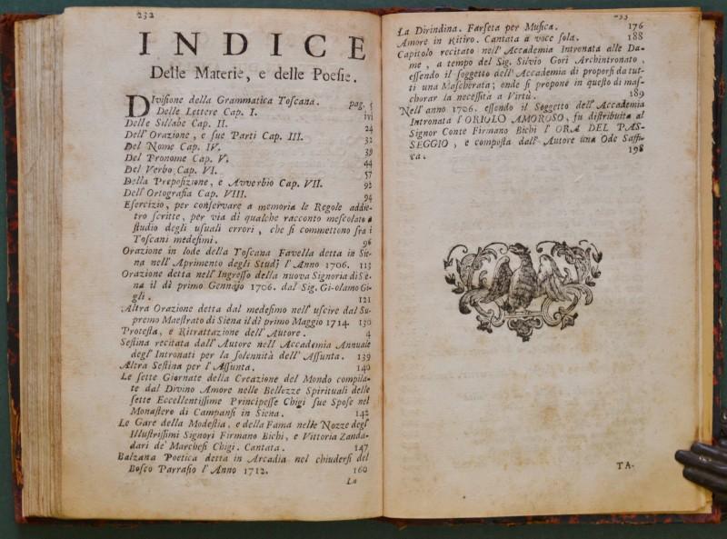 LEZIONI DI LINGUA TOSCANA Dettate dal Sig. GIROLAMO GIGLI Pubblico Lettore nell’Università di Siena. Coll’aggiunta di tre discorsi accademici e di varie poesie sagre, e profane del medesimo non più stampate.