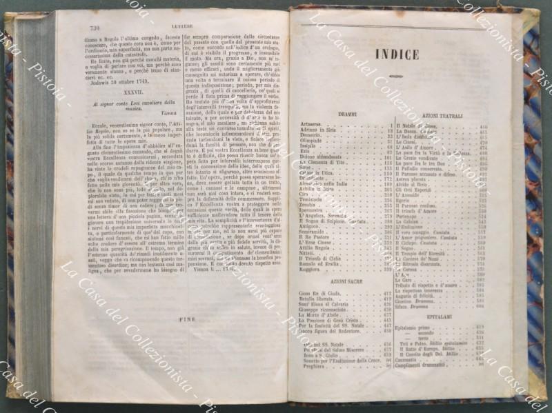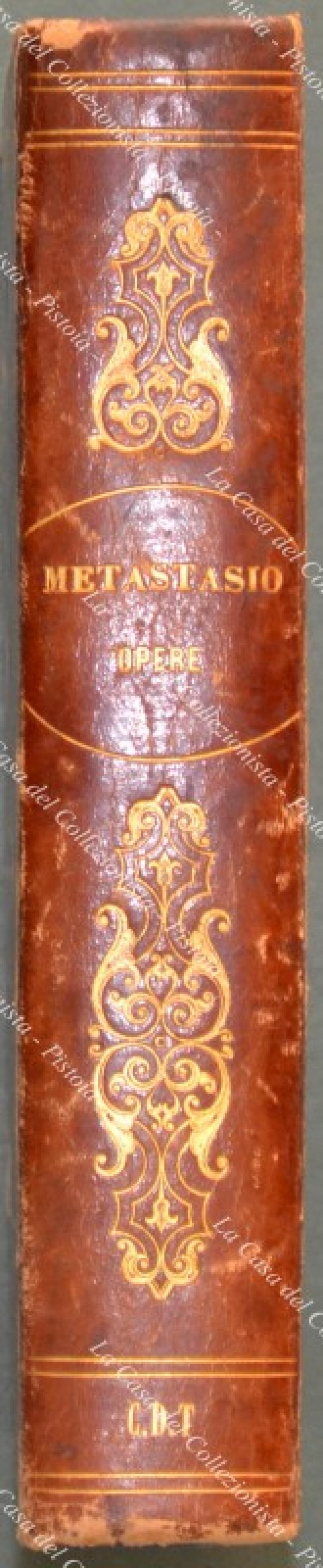 (Letteratura – ediz. ‘800) METASTASIO. OPERE. Volume unico. Napoli, Fr. Rossi-Romano, 1855. In 8° (cm 15x23,5), mezza pelle coeva con titolo in oro al dorso. Ritratto del Metastasio inciso all’antiporta + pp. (2) + 730 + (4). Minime usure, buona conservazione. (Rif.D7843-575/72)