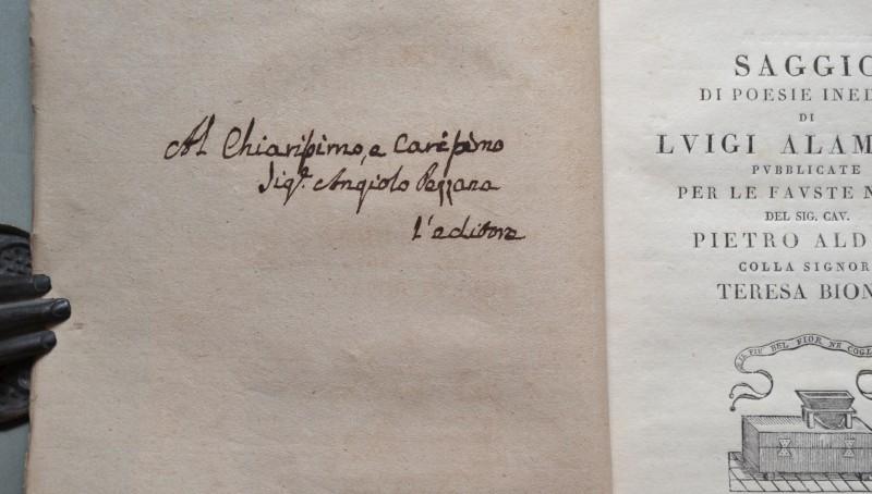 Saggio di poesie inedite di Luigi Alamanni pubblicate per le fauste nozze del Sig. Cav. Pietro Aldana colla Signora Teresa Biondi.