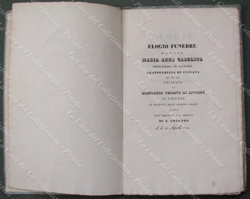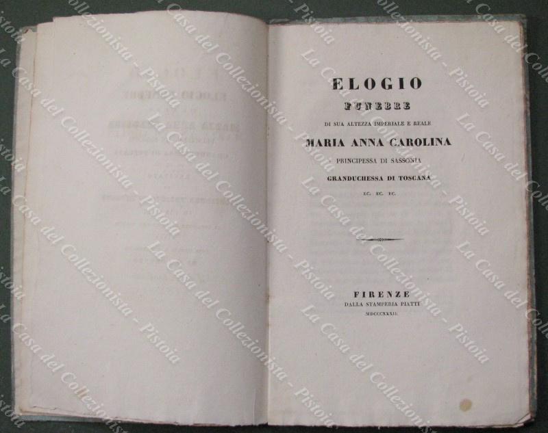 1832. ELOGIO FUNEBRE DI S.A.R.I. MARIA ANNA CAROLINA PRINCIPESSA DI SASSONIA GRANDUCHESSA DI TOSCANA. Firenze, Stamperia Piatti