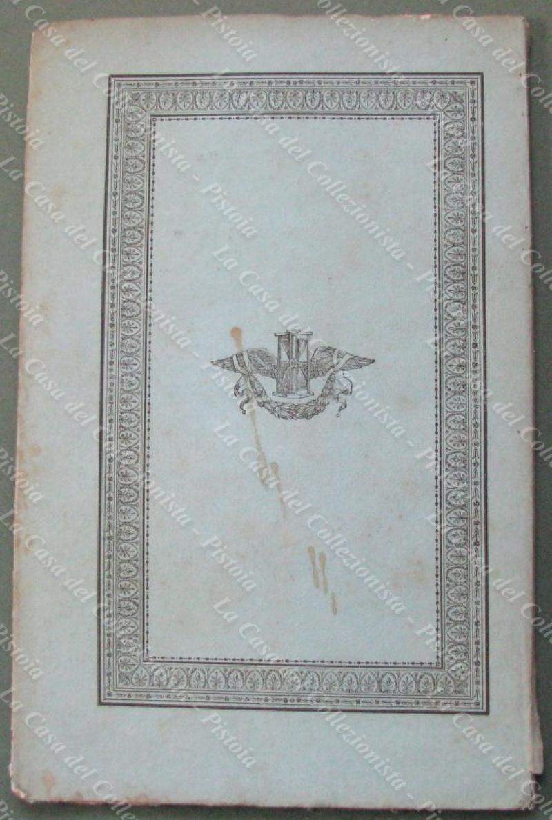 1832. ELOGIO FUNEBRE DI S.A.R.I. MARIA ANNA CAROLINA PRINCIPESSA DI SASSONIA GRANDUCHESSA DI TOSCANA. Firenze, Stamperia Piatti, 1832. Cm 15x24, cartoncino origionale con fregi tipografici, pagine 36+10 non numerate. Ottima conservazione. (Rif.E5805)