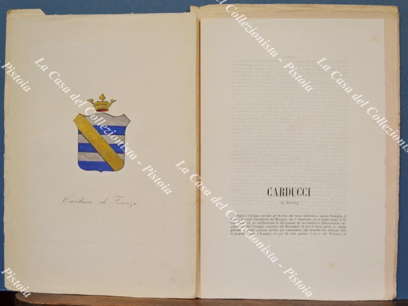 (Araldica) Famiglia CARDUCCI di FIRENZE. Fascicolo completo (tavola + testo). Firenze, Ed. Ulisse Diligenti, 1863.
