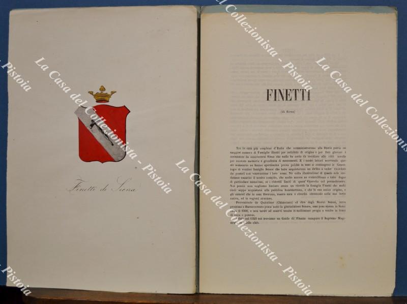 (Araldica) Famiglia FINETTI di Siena. Fascicolo completo (tavola + testo). Firenze, Ed. Ulisse Diligenti, 1865.