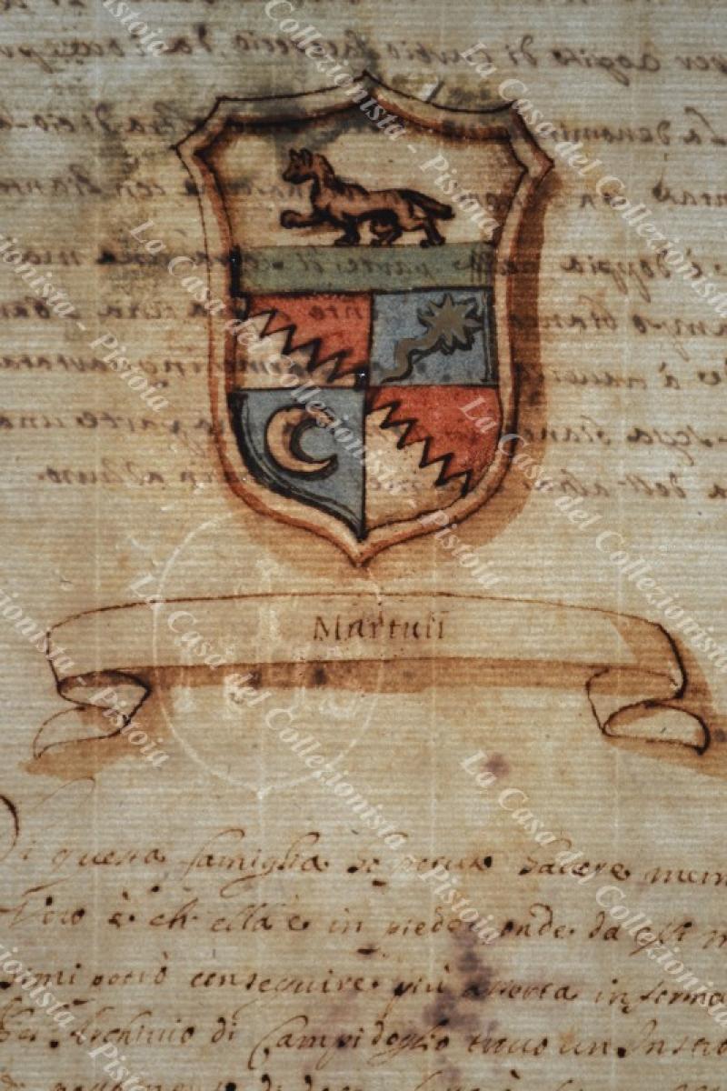 ARALDICA, Roma. FAMIGLIA MARTULI. Manoscritto seicentesco con stemma all'acquarello.