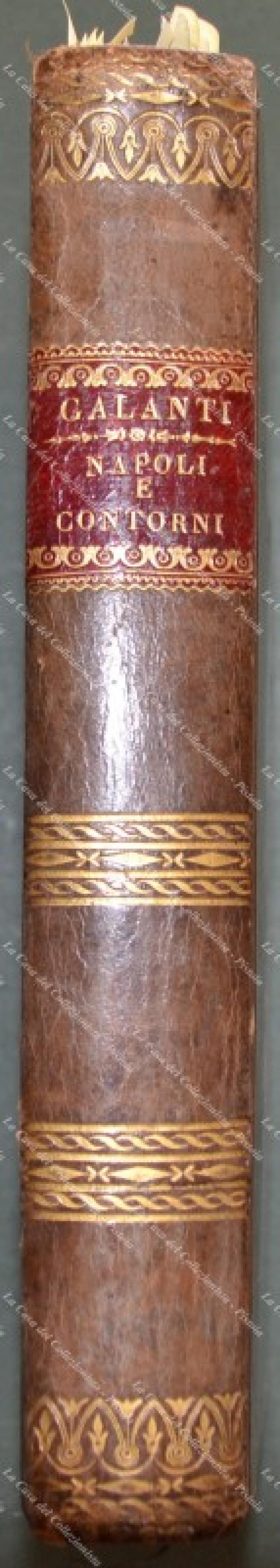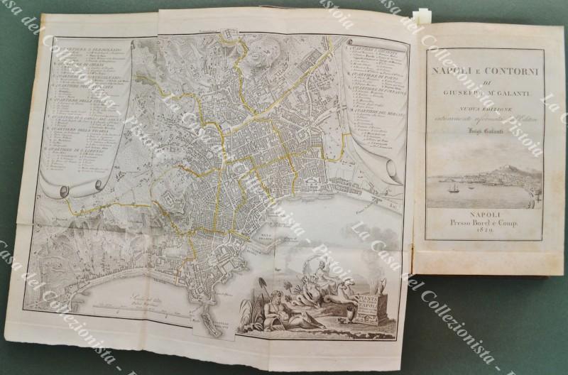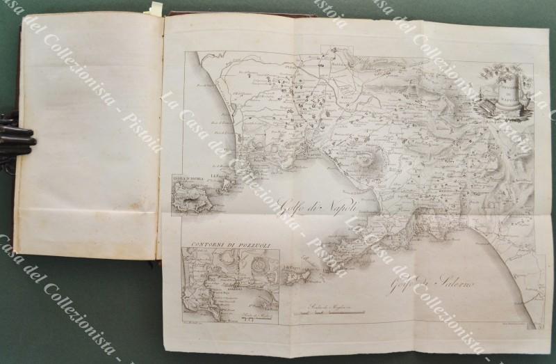 (Campania - Napoli) GALANTI LUIGI. NAPOLI E CONTORNI. Nuova edizione completamente riformata dall’editore. Napoli, Presso Borel e Comp., 1829. Cm 12.7x20.7, bella legatura coeva in piena pelle con al dorso tassello e fregi in oro. Frontespizio con bella vignetta incisa in rame raffig. il golfo di Napoli, seguono pp. 4 non numerate, pp. 390 + 6 non numerate; all’inzio bella pianta della città ripiegata, alla fine bella carta del golfo ripieg. con la zona di Pozzuoli inquadrata a parte e, fuori testo, altre 11 tavole. Opera completa ditutte le carte e tavole. Conservazione ottima sia per la legatura che per l’interno; solo lievi ingiallimenti. (Rif.F3924)