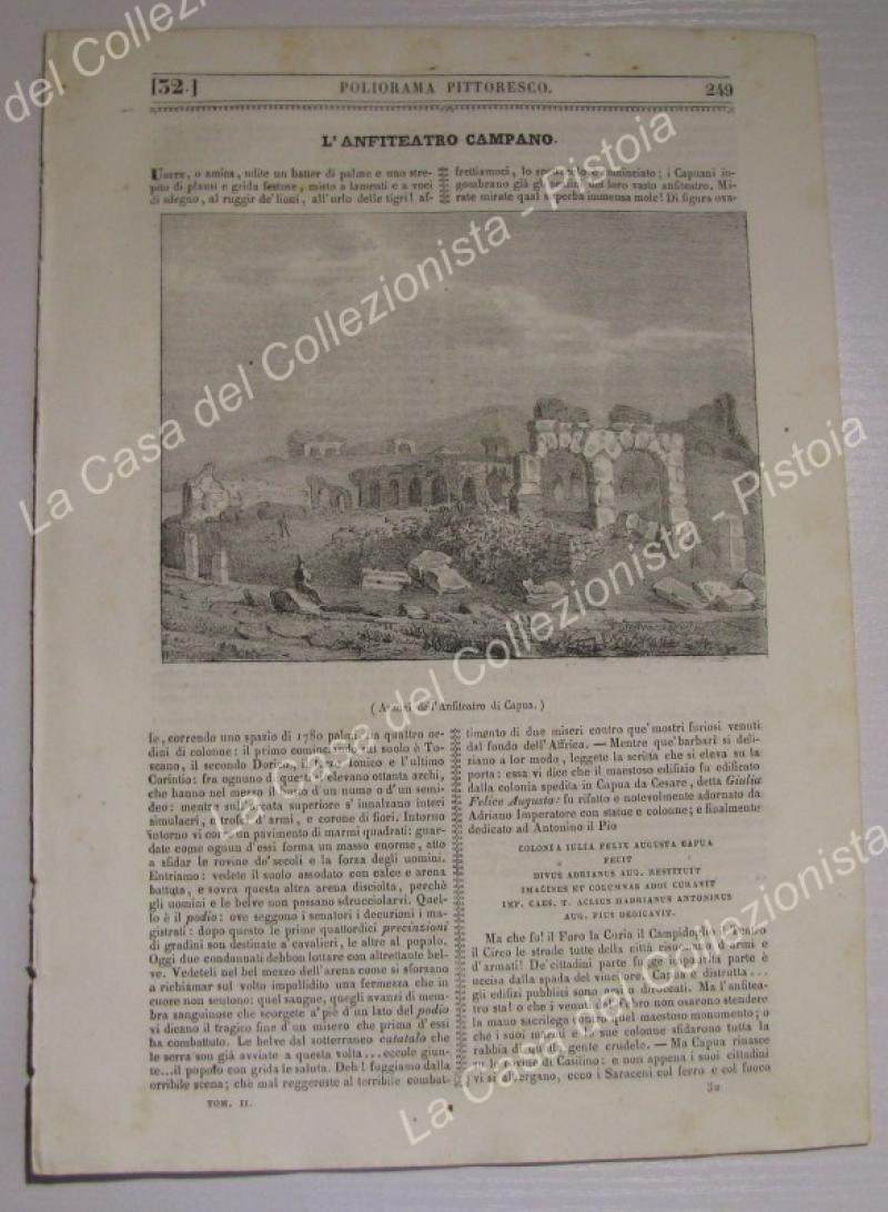 CAPUA, Campania. Resti dell'Anfiteatro. Poliorama Pittoresco 1837. Intero fascicolo di pagine 8 contenente litografia di mm 155x120 e relativo articolo. (Rif.E4516)