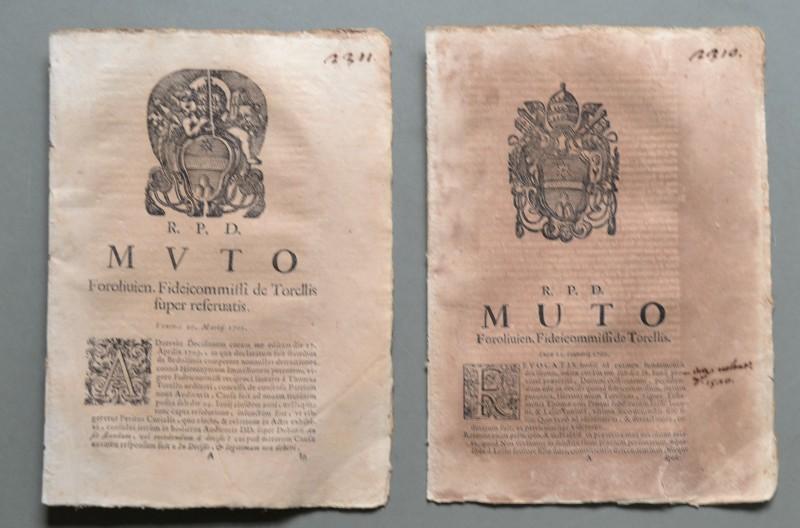 Emilia Romagna, FORLI'. SACRA ROTA. Due placchette a carattere legale del 1705 di pagine 8 e pagine 16. (Rif.C527 - 256/64)