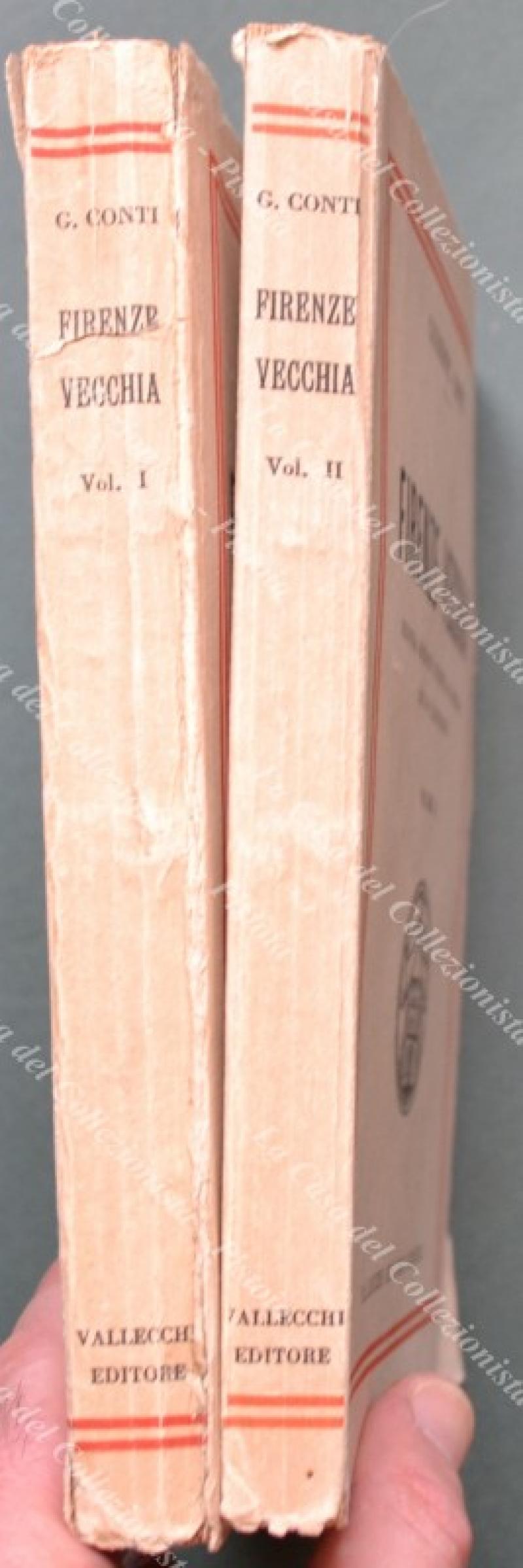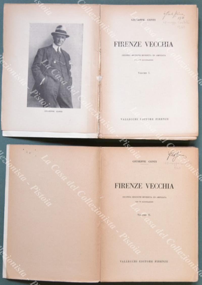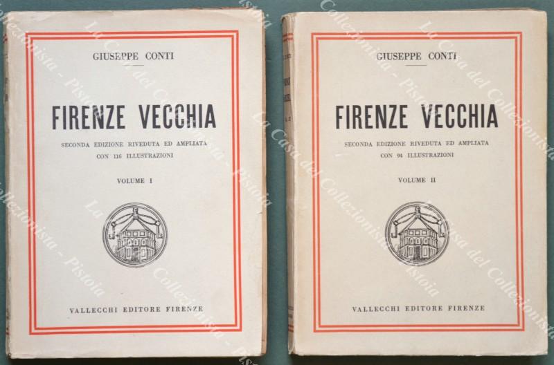 (Toscana - Firenze) CONTI GIUSEPPE. FIRENZE VECCHIA. Seconda edizione riveduta ed ampliata. Firenze, Vallecchi, 1928. Cm 16,5x22, brossura editoriale. 2 volumi di pp. 429 e pp. 333 con 210 illustrazioni. Buona conservaz. eccetto piccole usure. (Rif.F0525-74)