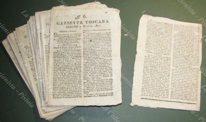 GAZZETTA TOSCANA. ANNATA 1807. Periodico settimanale stampato a Firenze da Giuseppe Pagani. Creato del 1776 dal Governo Toscano per testimoniare la nuova politica riformatrice dei Lorena.