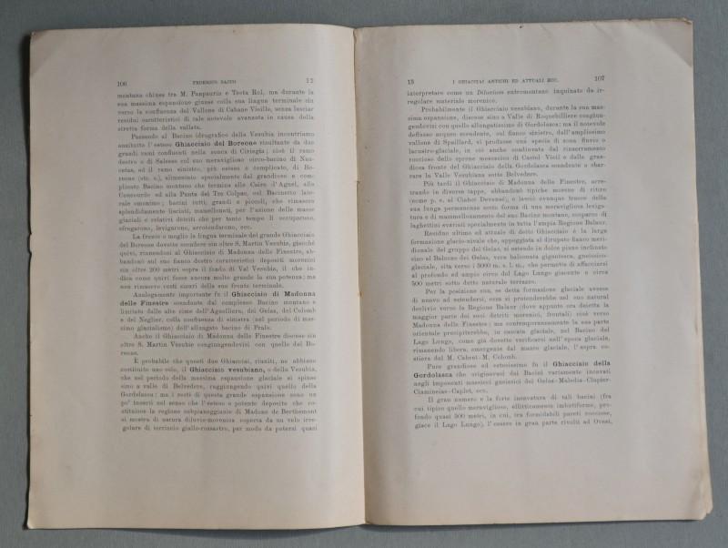 (Geologia – Alpi Marittime) SACCO FEDERICO. I GHIACCIAI ANTICHI ED ATTUALI DELLE ALPI MARITTIME CENTRALI. Pavia, Fusi, 1912. In 8° (cm 17x25), brossura originale, pp. 32 con