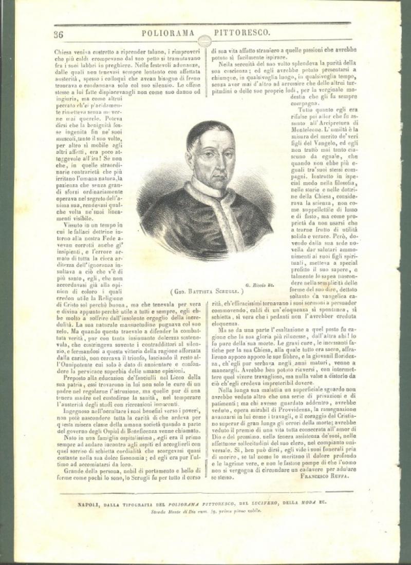 GIOVANNI BATTISTA SCRUGLI, nato a Monteleone (Foggia). Fascicolo intero del Poliorama Pittoresco