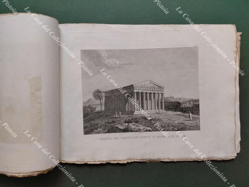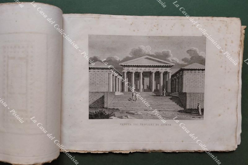 (Grecia) BARTHELEMY Jean Jacques. VIAGGIO DI ANACARSI IL GIOVINE NELLA GRECIA VERSO LA META' DEL QUARTO SECOLO AVANTI L'ERA VOLGARE. Venezia, Antonelli, 1828. ATLANTE. Brossura editoriale (manca il piatto anteriore), 10 pagine di testo, 33 tavole di carte e vedute numerate 1 - 32 (bis la numero 10). Esemplare privo del piatto anteriore della brossura, ingiallimenti, macchia al margine bianco inferiore, quasi slegato. (Rif.F7090)