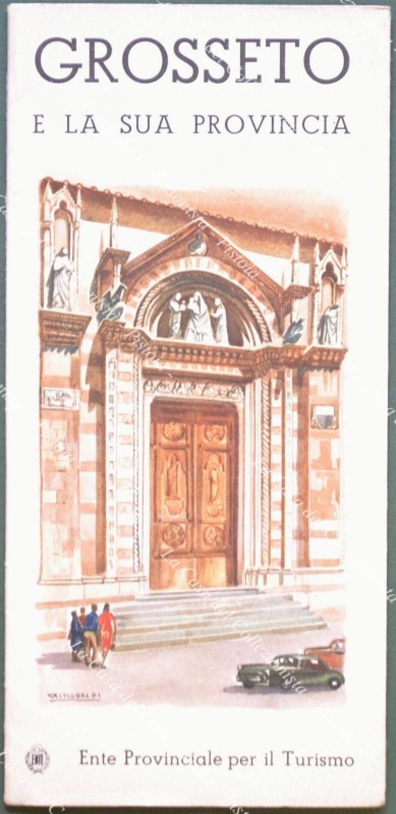 GROSSETO e PROVINCIA. Pieghevole disegnato a colori da Riccobaldi. Anni '50