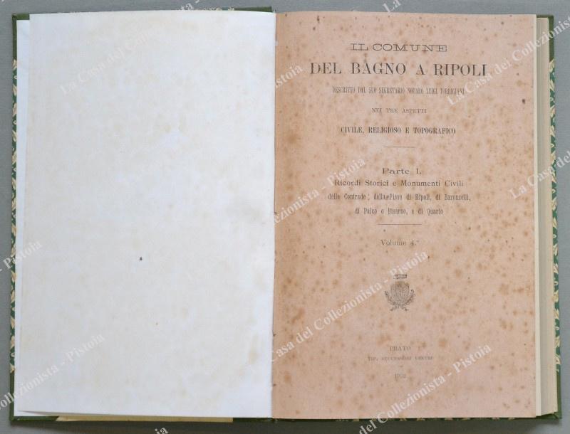 IL COMUNE DI BAGNO A RIPOLI....TORRIGIANI LUIGI. Prato, Tip. Vestri, 1902