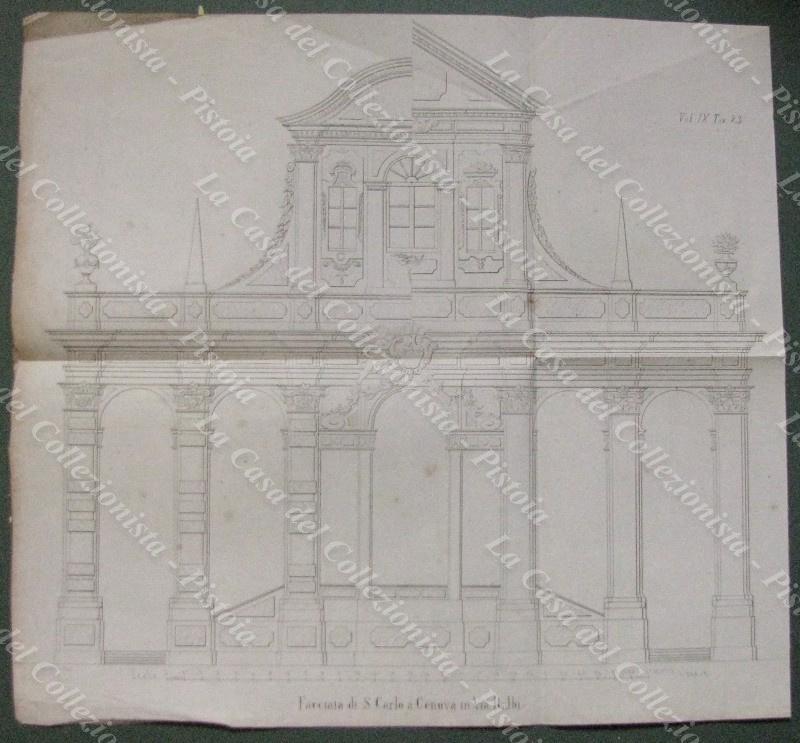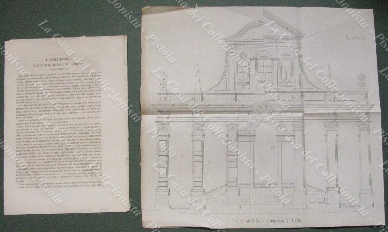 MEMORIE DI INTERESSE LOCALE E SCIENTIFICO. LIGURIA. Genova. Lo stile barocco e la facciata di San Carlo a Genova. Stralcio di pagine 4 + fuori testo ripiegata tavola di cm 39x33. Anno 1861. Tratto da IL GIORNALE DELL’INGEGNERE ARCHITETTO edito a Milano a partire dal 1854. Formato cm 18,5x26. (E5219-365/68)