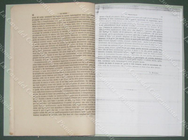 MEMORIE DI INTERESSE LOCALE E SCIENTIFICO. LOMBARDIA. Chiaravalle. “La Torre di Chiaravalle”. Stralcio di pagine 17 (una in fotocopia) + fuori testo 2 tavole ripiegate. Anno 1866. Tratto da IL GIORNALE DELL’INGEGNERE ARCHITETTO edito a Milano a partire dal 1854. Formato cm 18,5x26. (E5201-374/68)