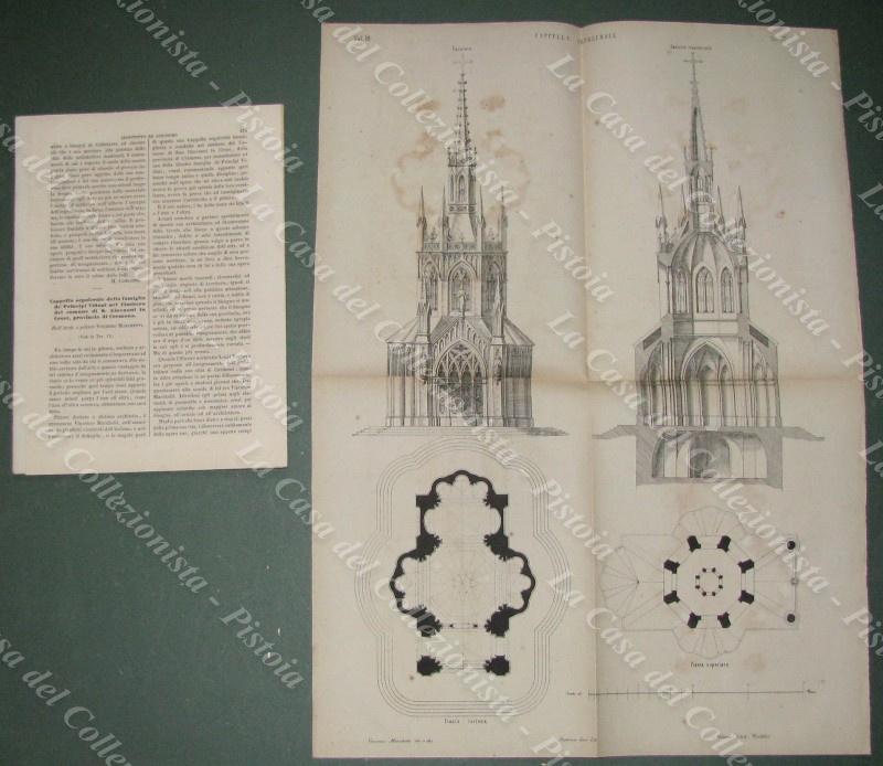 MEMORIE DI INTERESSE LOCALE E SCIENTIFICO. LOMBARDIA. Cremona. “Cappella sepolcrale dei Principi Vidoni nel cimitero del comune di S. Giovanni”. Stralcio di pagine 3 con fuori testo grande tavola ripiegata. Anno 1855. Tratto da IL GIORNALE DELL’INGEGNERE ARCHITETTO edito a Milano a partire dal 1854. Formato cm 18,5x26. (E5205-375/68)