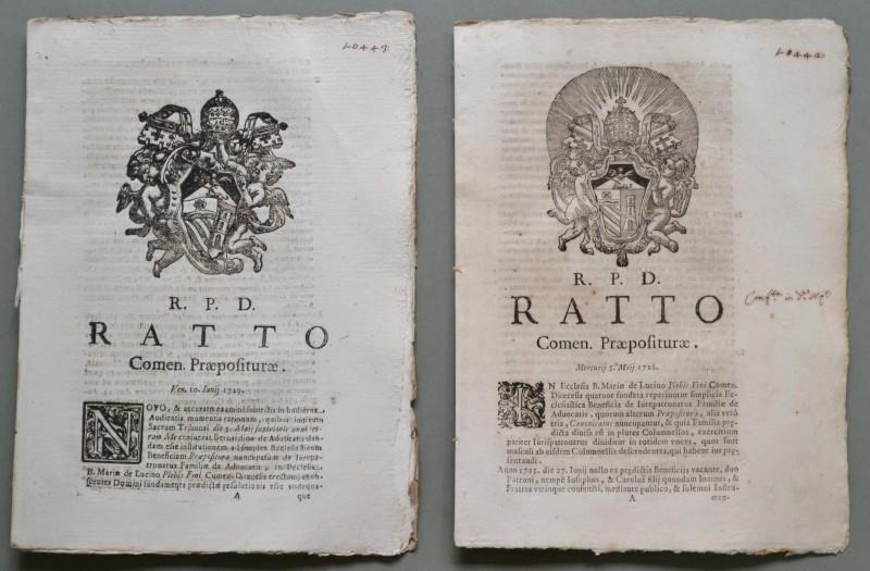 Lombardia, FINO MORNASCO, LUCINO. SACRA ROTA. Due placchette a carattere legale del 1729