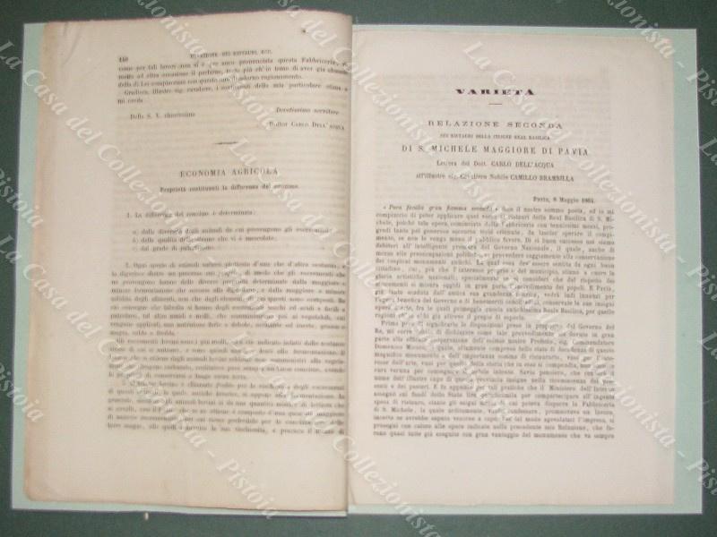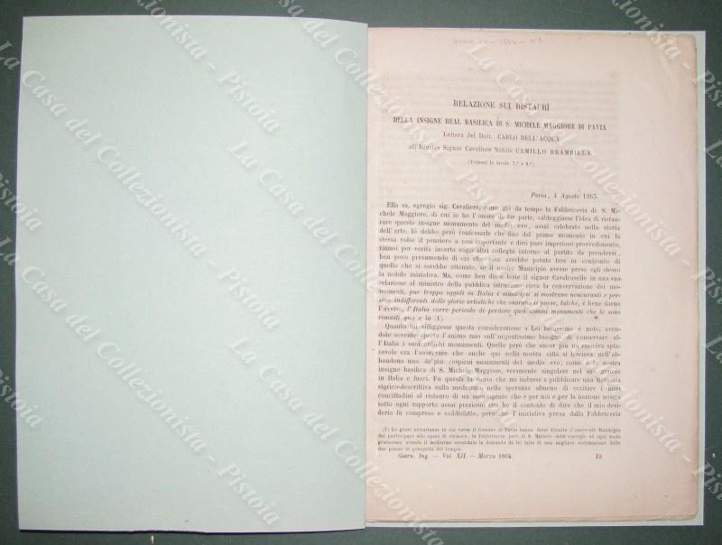 MEMORIE DI INTERESSE LOCALE E SCIENTIFICO. LOMBARDIA. Pavia. ”Relazione sui restauri della Basilica di S. Michele Maggiore”. Stralcio di pagine 6 con fuori testo 2 tavole ripiegate. Anno 1863. Tratto da IL GIORNALE DELL’INGEGNERE ARCHITETTO edito a Milano a partire dal 1854. Formato cm 18,5x26. (E5204-380/68)