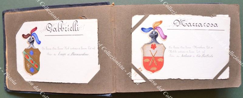 LUCCA - ARALDICA. Collezione di 53 cartoncini formato cartolina di cm 14x9. Su ciascuno uno stemma finemente realizzato a tempera e notizie biografiche. Quasi tutti firmati provinciali (alcuni datati 1904).