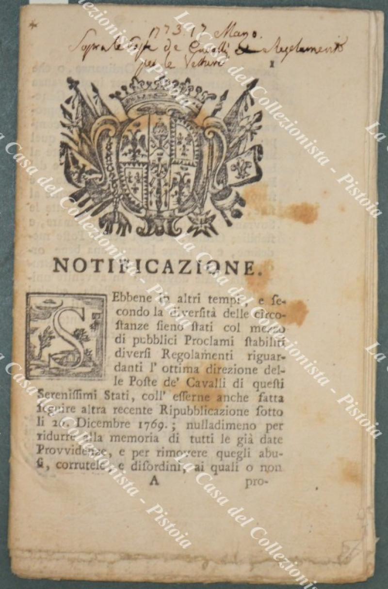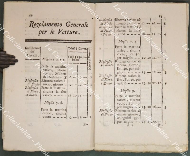 MODENA, anno 1773. REGOLAMENTO GENERALE PER LE VETTURE...