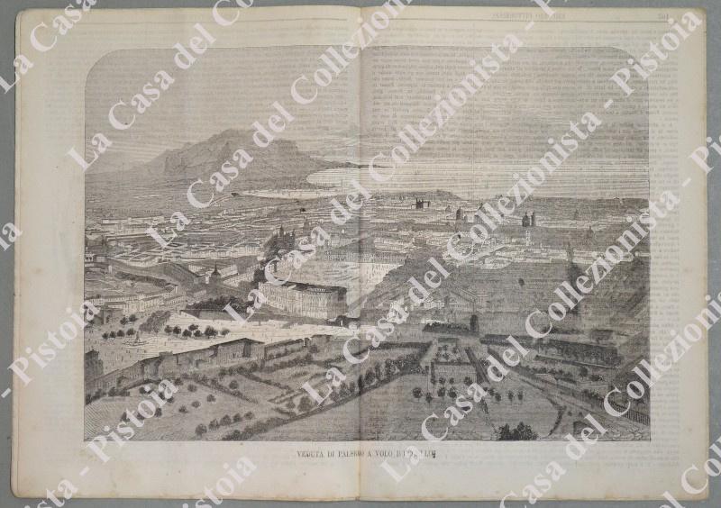 PALERMO. Fascicolo numero 28 del 1865 de L'EMPORIO PITTORESCO. Formato cm 21x29,5. Completo. All'interno su pagina doppia, veduta a volo d'euccello di Palermo. (Rif.D6106)