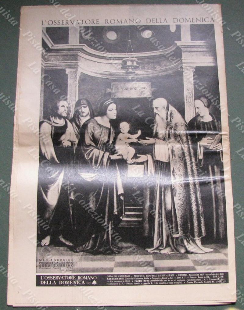 (Periodico illustrato) OSSERVATORE ROMANO DELLA DOMENICA. Dal dopoguerra L’OSSERVATORE DELLA DOMENICA. Settimanale illustrato edito a Roma. Anno VI (Anno 1939), annata completa di 53 numeri non rilegati. Qualche imperfezione e leggero ingiallimento, ma buona conservazione. Formato cm 31x44, pp. 12 a numero. (Rif.D7916-602/72)