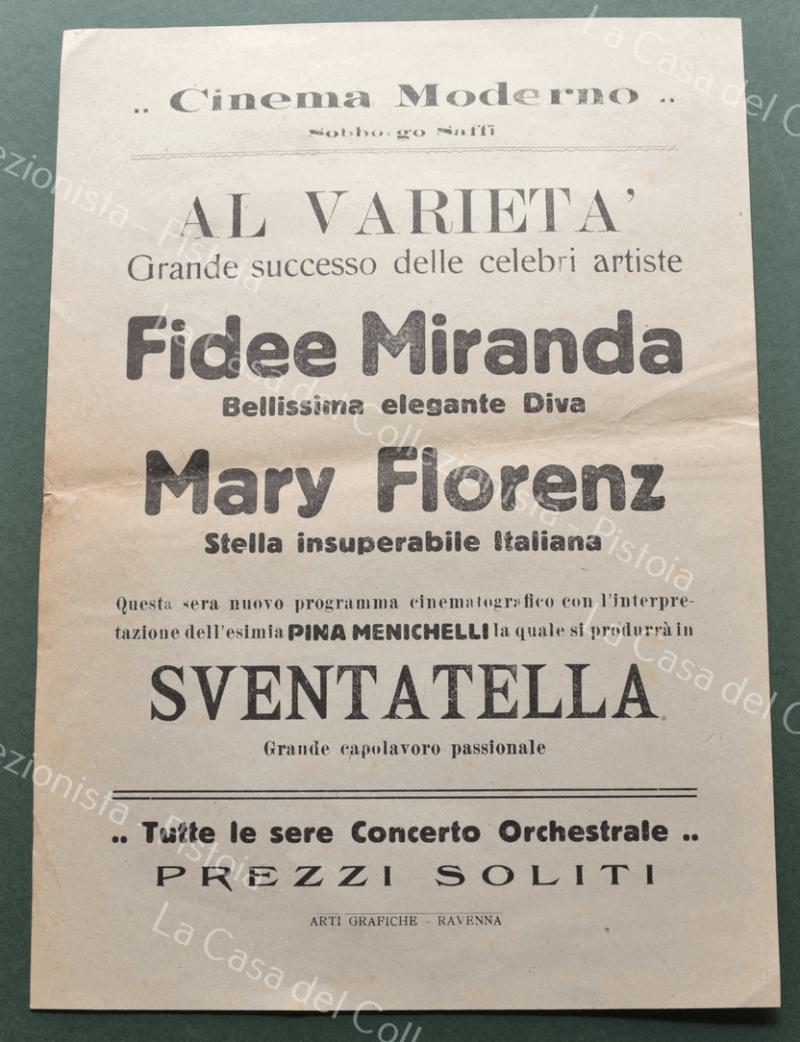 RAVENNA. CINEMA MODERNO. Volantino di spettacoli di cinema e varietà. Circa 1930, cm 17x24. (Rif.F3339)