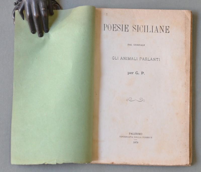 Sicilia - Poesie. POESIE SICILIANE. "Dal giornale Gli Animali Parlanti per G.P.". Palermo, Tip. della Forbice, 1879. In 16° (cm 12,5x19), brossura editoriale, pagine 87. Intonso. Ottima conservazione. (Rif.D1561-74)
