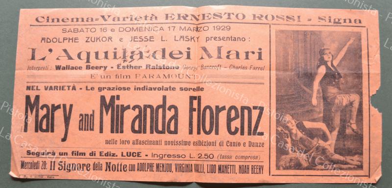 SIGNA, Firenze. CINEMA - VARIETA' Ernesto Rossi. Volantino, circa 1929, di cm 34x16. Imperfezioni. (Rif.F3344)